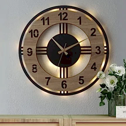 Modern Sonoma LED Işıklı Şık Dekoratif Ev Duvar Saati