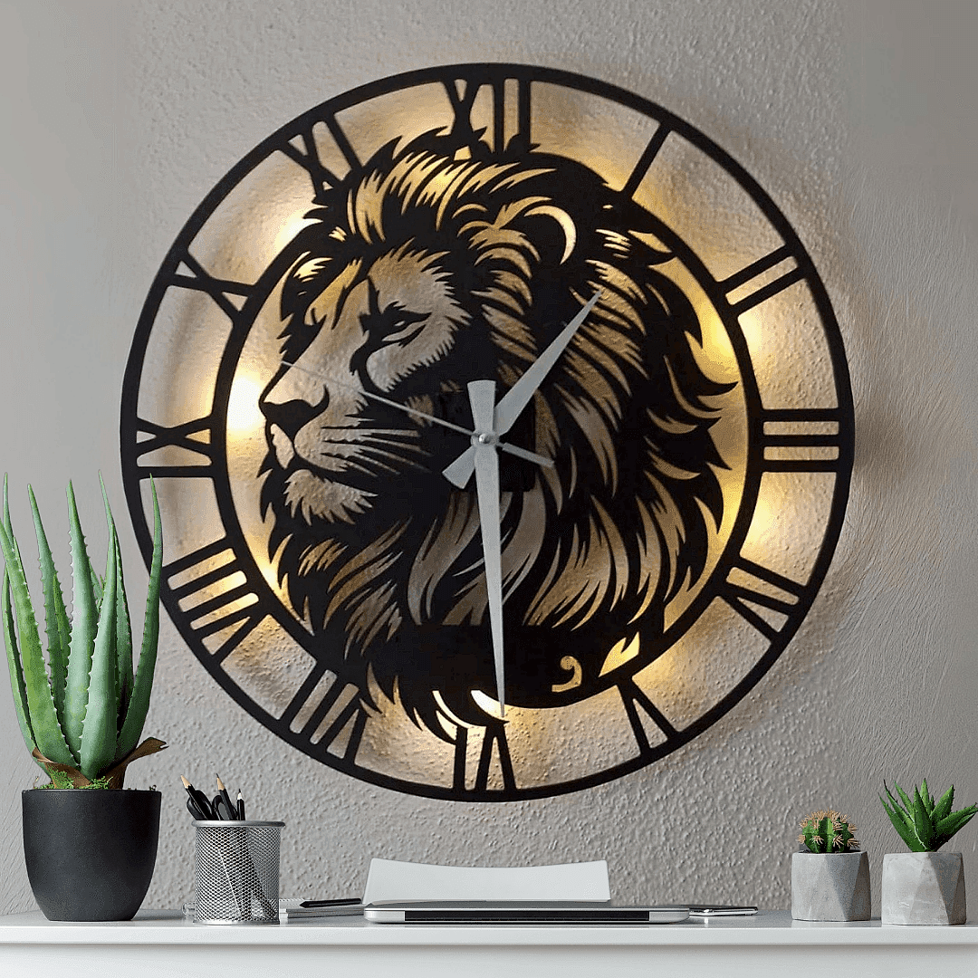 Aslan Tasarımlı Işıklı Duvar Saati – Şık ve Dekoratif Saat