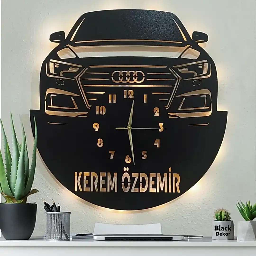Audi İsim Yazılabilir Özel Tasarım Dekoratif Oto Galeri Duvar Saati