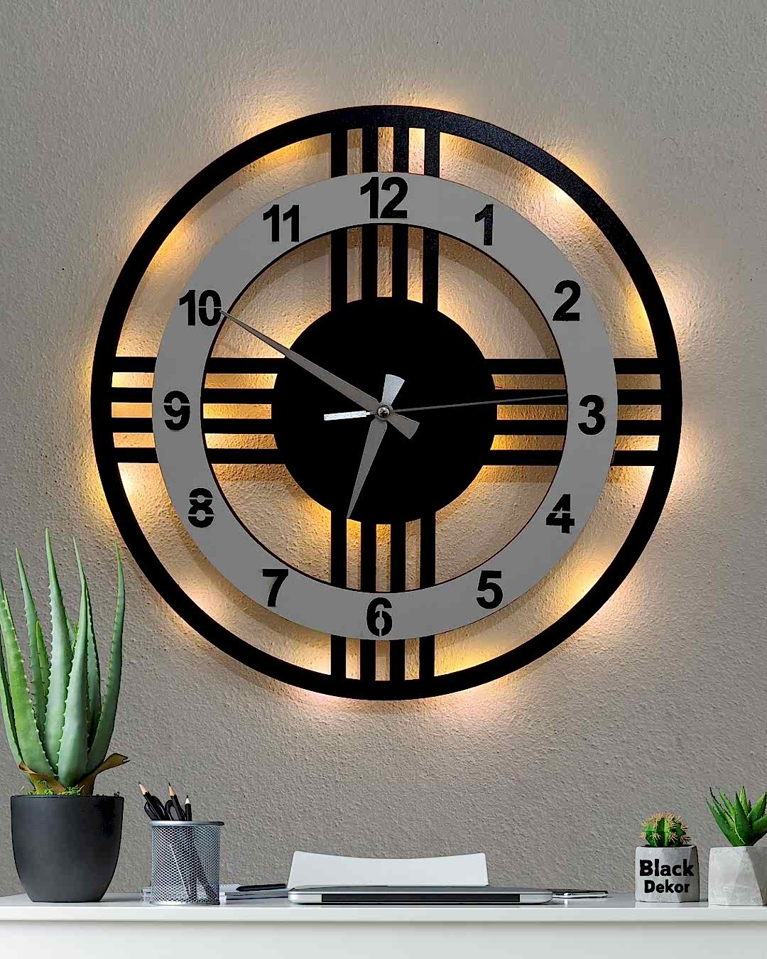 Beyaz çemberli modern 4 çizgili tasarımıyla öne çıkan bu ışıklı duvar saati, ev ve ofis dekorasyonuna sade ve şık bir görünüm kazandırır. 40 cm ideal boyutu sayesinde duvarda dengeli ve dikkat çekici bir duruş sağlar. Işıklı yapısı ile bulunduğu ortamda estetik ve hoş bir ambiyans oluşturur.