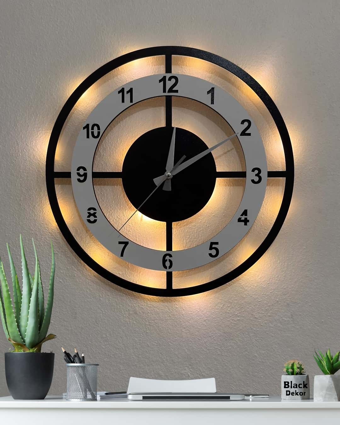 Beyaz çemberli modern tek çizgili tasarımıyla öne çıkan bu ışıklı duvar saati, ev ve ofis dekorasyonuna sade ve şık bir görünüm kazandırır. 40 cm ideal boyutu sayesinde duvarda dengeli ve dikkat çekici bir duruş sağlar. Işıklı yapısı ile bulunduğu ortamda estetik bir ambiyans oluşturur.