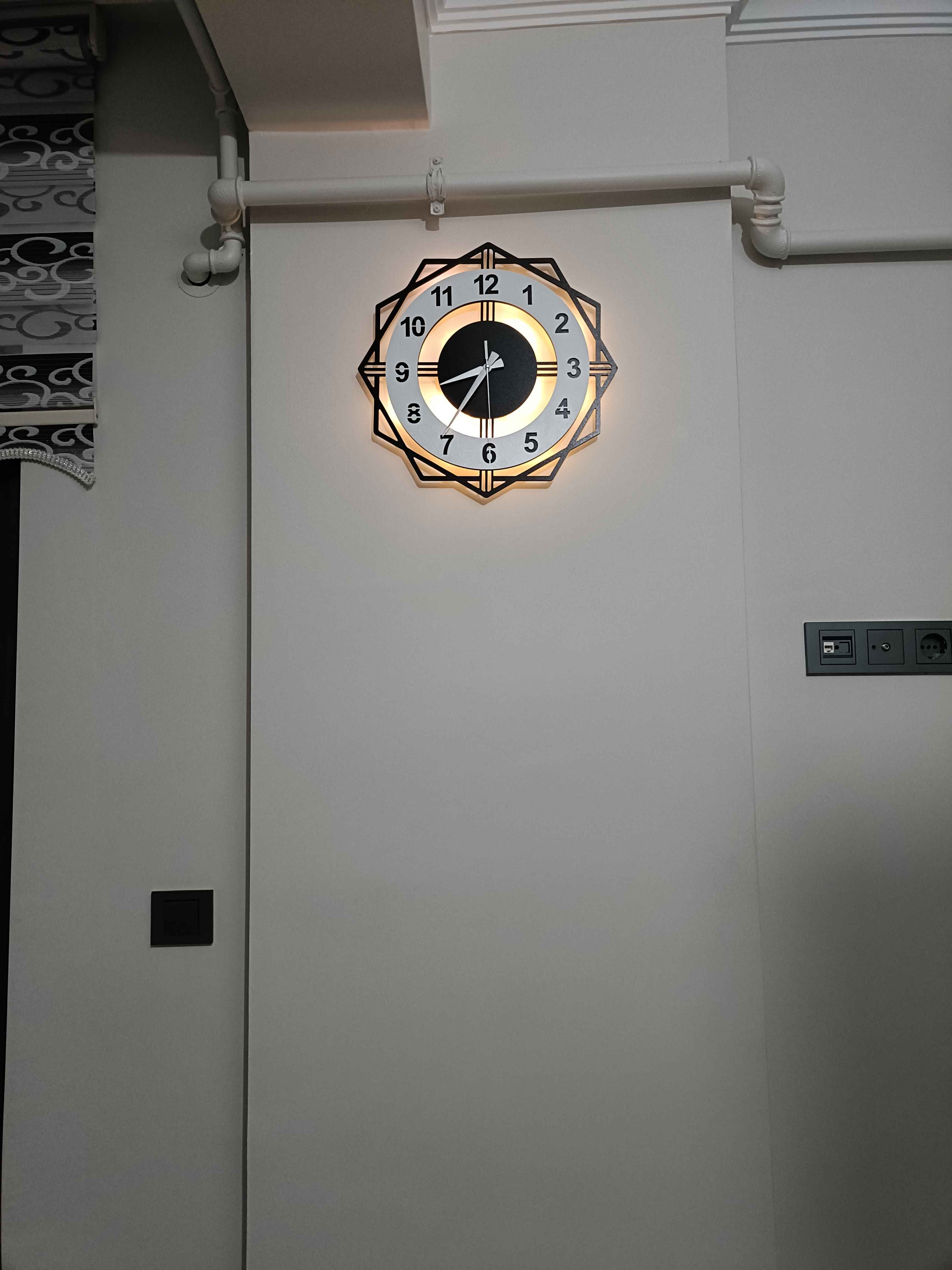 50 cm dekoratif saat, beyaz renkli duvar saati, beyaz tasarım duvar saati, dekoratif büyük duvar saati, geometrik modern saat, ışıklı dekoratif saat, ışıklı duvar saati, LED ışıklı saat, minimalist tasarım saat, modern iç mekan saat