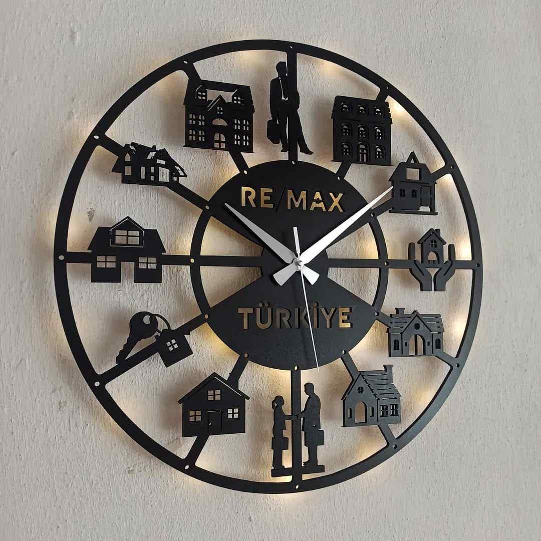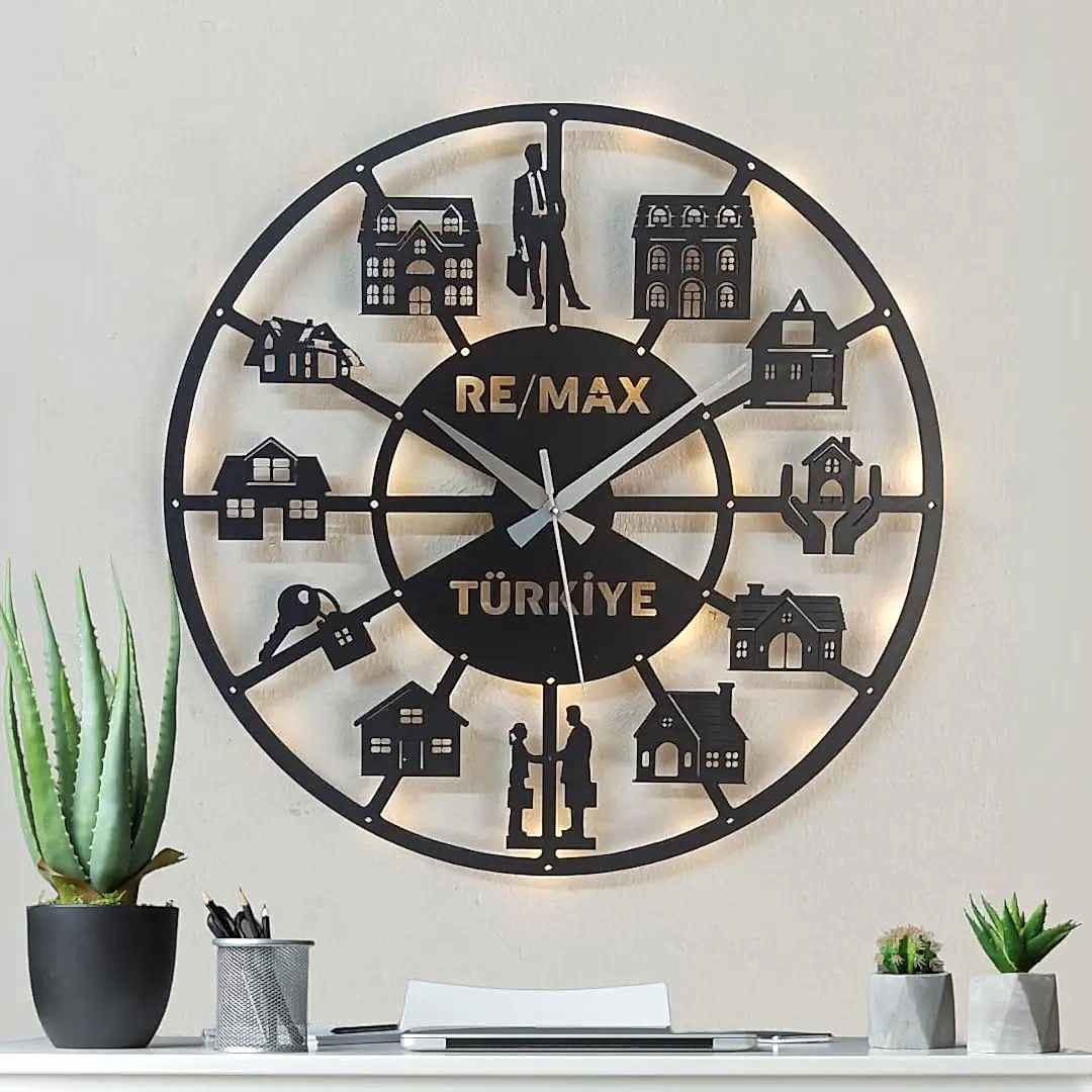 emlak ofisi dekoratif saat, emlak temalı duvar saati, emlakçı duvar saati, gayrimenkul ofisi duvar saati, gayrimenkul şirketi duvar dekoru, isim yazılı emlakçı saati, ışıklı emlakçı saati, kişiye özel emlak duvar saati, led ışıklı gayrimenkul saati, ofis için dekoratif duvar saati