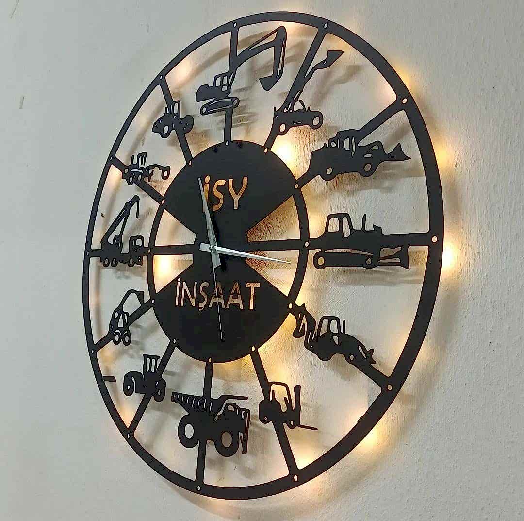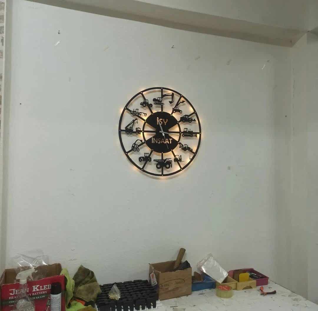 İş Makineleri İsimli Işıklı Duvar Saati, Hafriyat Firmaları