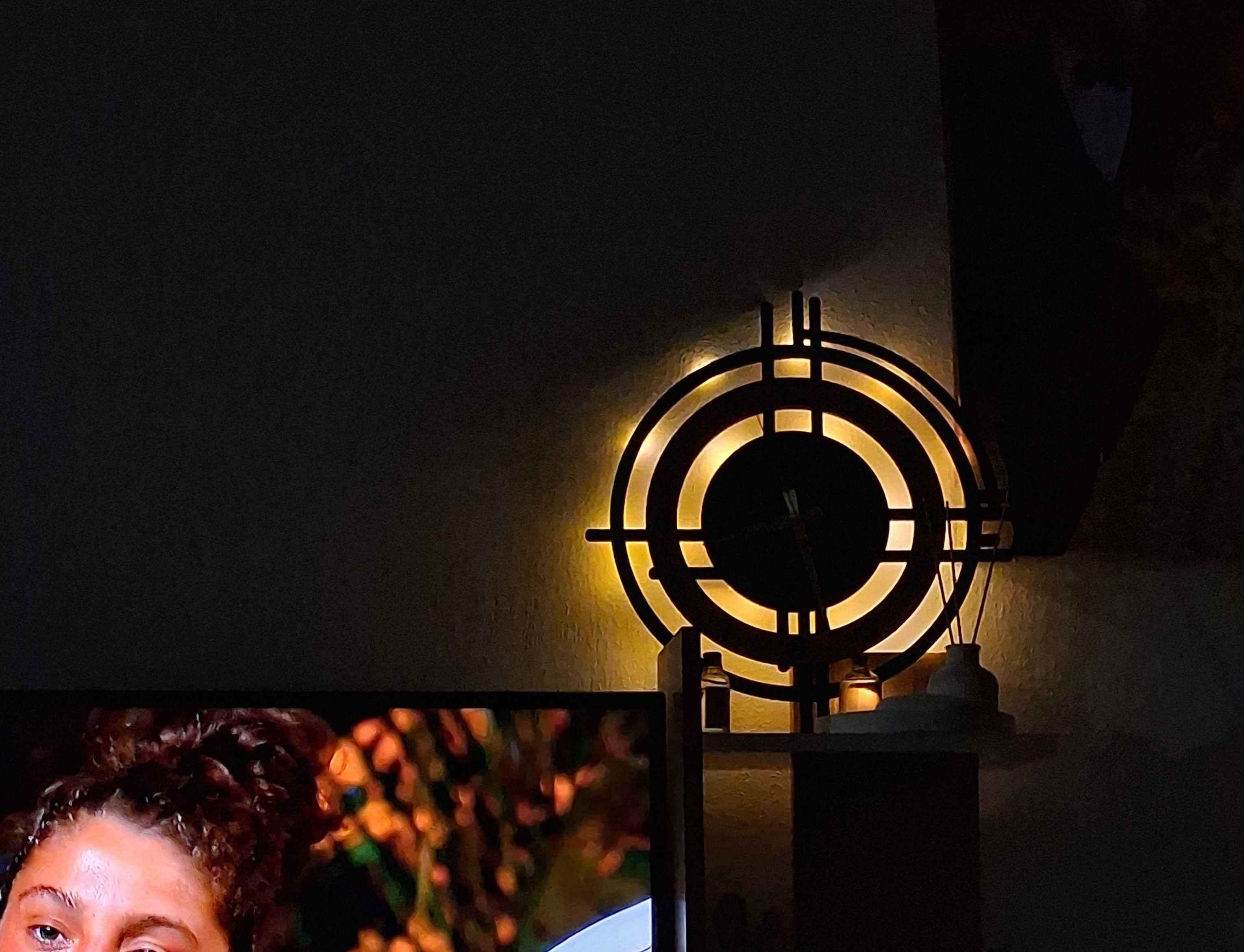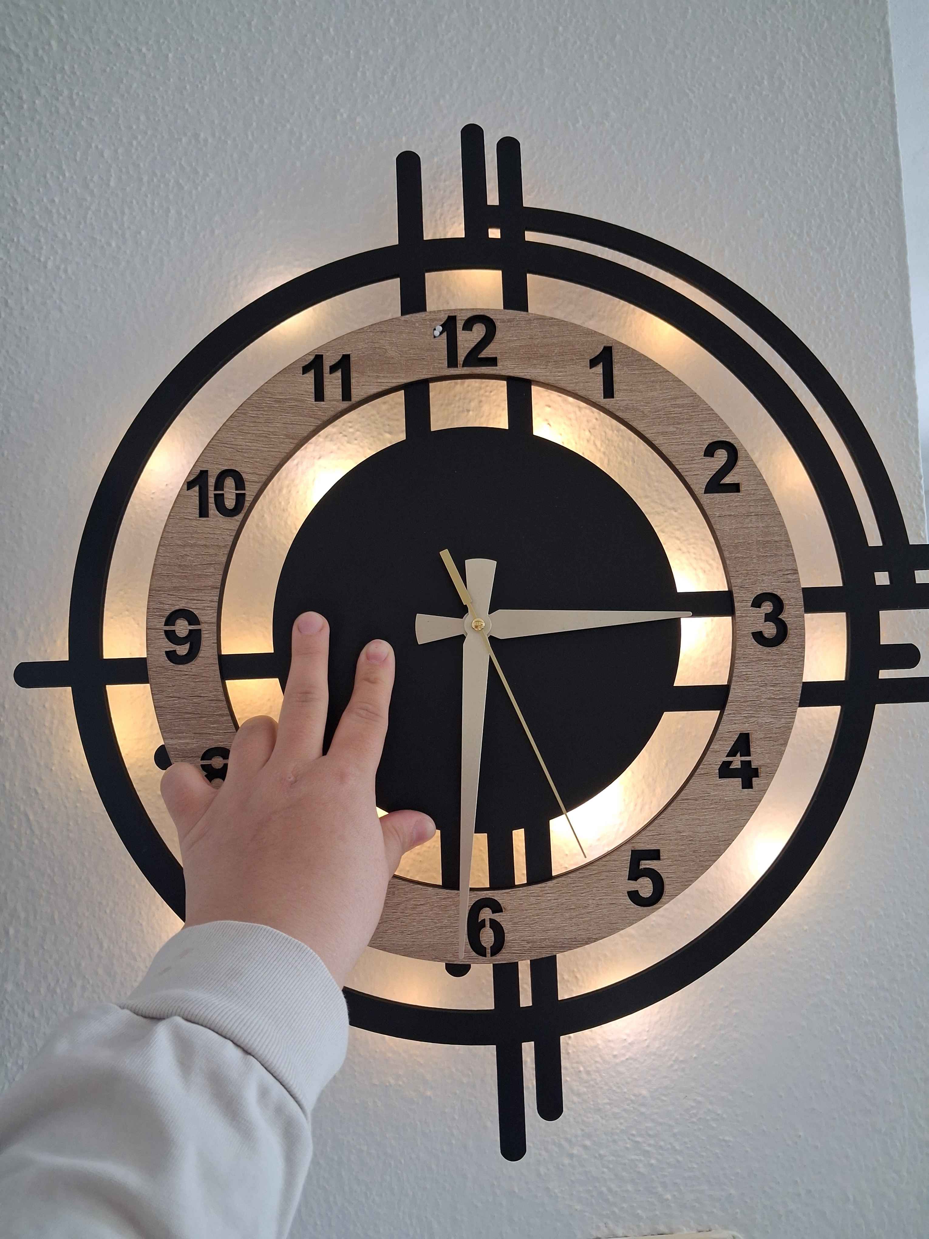Sonoma renk detayları ve modern 5 çizgili tasarımıyla dikkat çeken ışıklı duvar saati, yaşam alanlarınıza şıklık katar.